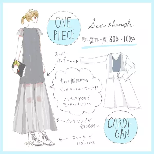 シースルートップスでヘルシーな肌見せ 透け感がかわいいレイヤードコーデ術 イラスト ローリエプレス